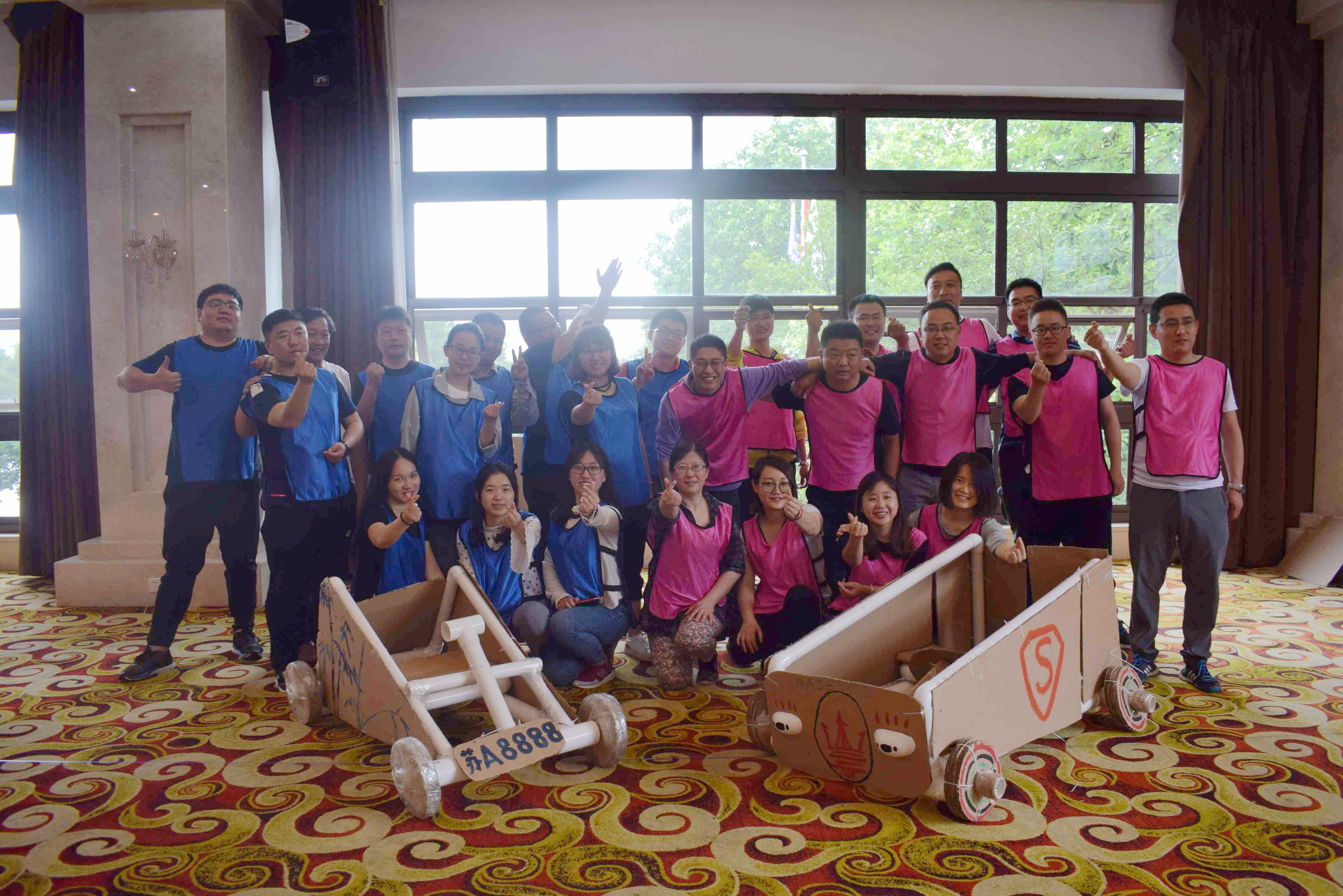 然后,按照教練的指示,大家隨機(jī)分成兩個(gè)小組,實(shí)現(xiàn)了從各自小團(tuán)體“群龍取水”、“貪吃蛇”、“神筆馬良”、“指壓板障礙賽”到“F1方程式賽車”環(huán)節(jié)兩組的PK對擂。其中,“群龍取水”是推崇合理的分工與合作,加強(qiáng)團(tuán)隊(duì)內(nèi)部的協(xié)作與溝通,體會(huì)個(gè)人與團(tuán)隊(duì)之間的相互作用;培養(yǎng)團(tuán)結(jié)一致、密切配合、戰(zhàn)勝困難的團(tuán)隊(duì)精神。“貪吃蛇”是實(shí)現(xiàn)團(tuán)隊(duì)合作;在富有挑戰(zhàn)性的環(huán)境下實(shí)現(xiàn)良性溝通,密切配合,群策群力,共同解決逆境中的問題。“神筆馬良”是感受團(tuán)隊(duì)協(xié)作中各成員之間的溝通方式與行為方式的變化并及時(shí)調(diào)整。“指壓板障礙賽”是增強(qiáng)團(tuán)隊(duì)集體榮譽(yù)感,強(qiáng)調(diào)密切合作,風(fēng)雨同舟。“F1方程式賽車”作為此次拓展的金牌項(xiàng)目,真正詮釋了集思廣益、分工明確,定崗定責(zé)的思想。讓同事關(guān)系更加親密、執(zhí)行力更加夯實(shí)!